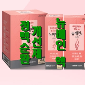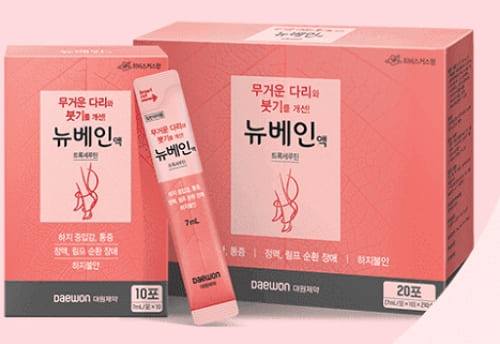 뉴베인액은 정맥혈관의 투과성과 탄력성을 회복시켜 하지정맥류로 인해 다리가 붓거나 통증이 있을 때 증상 개선에 효과가 있다고 합니다.