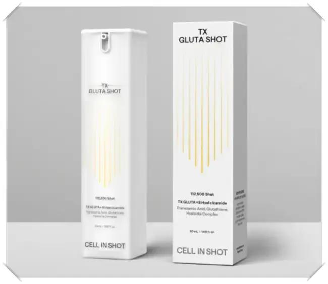 트라넥 글루타샷(TX 글루타샷)은 셀인샷이란 브랜드가 만든 주름, 미백 기능성 화장품입니다. 이 제품은 기미개선 전문성분 트라넥삼산과 , 항산화 기능으로 인한 미백작용이 탁월한 글루타치온을 배합한 독자성분 트라넥 글루타와 셀인샷 딜리버리 시스템이라는 흡수기술로 기미, 주근깨를 획기적으로 개선해주는 제품입니다. 기존의 기미 개선 기능성 화장품들에서 별다른 효과를 못보았던 이유는 기미 생성을 억제하는 기능은 있었지만, 오래된 기미를 탈락시키지 못했기 때문이라고 하는데요. TX 글루타샷은 문제점이었던 기존 기미를 탈락시키는 자연박피력을 향상시킴으로써 기미 및 색소침착 개선율을 47%까지 향상시킨 제품으로 사람들의 뜨거운 관심을 받고 있습니다. 제형은 세럼형으로 50ml의 내용물이 길다란 사각기둥 용기에 들어 있습니다.