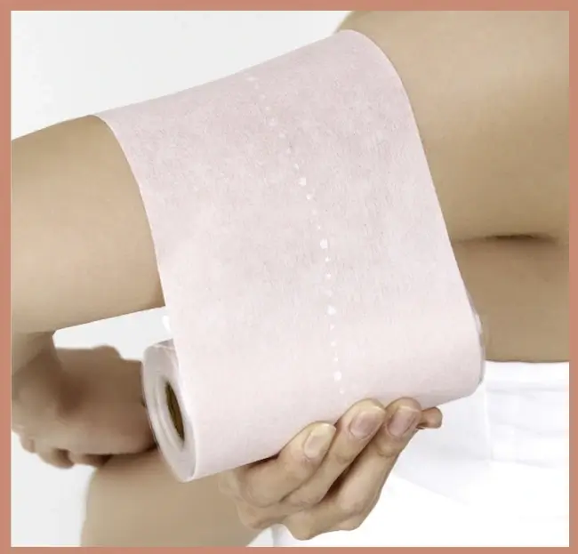 3. 쥬비컷 슬리밍 랩핑 원단 뒷면의 투명한 필름을 벗겨냅니다.