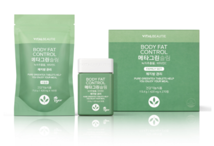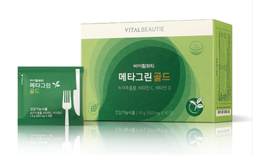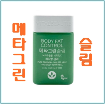 바이탈뷰티 메타그린 슬림이라고 하는 다이어트 건강기능식품인데요. (주)에스트라에서 만들었고, 아모레 퍼시픽에 의해 유통되고 있는 제품입니다.
