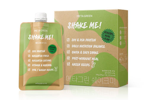 메타그린 쉐이크미는 메타그린 슬림과는 별도의 건강 영양식품으로 7가지의 곡물과 단백질, 그리고 녹차 영양소로 만든 영양식품입니다.
