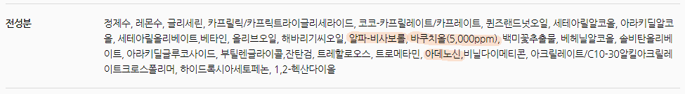 바코치올 세럼에는 이 중에서 아데노신이란 기능성 성분을 사용했습니다.