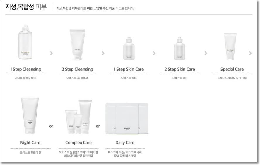 아래와 같이 단계별로 바르되, 꼭 모든 제품을 사용하실 필요는 없고, 피부 상태에 따라 가감할 수 있다고 하네요.