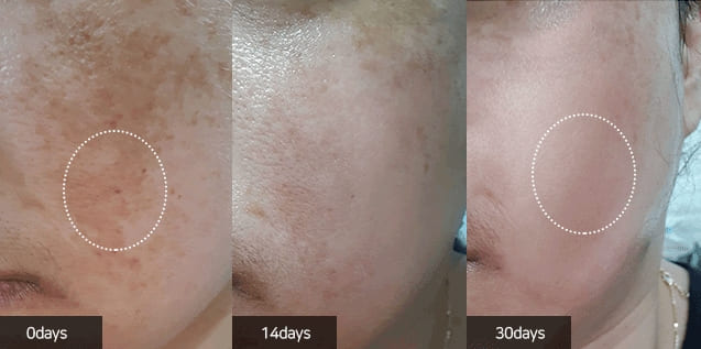 기미, 잡티를 제거하는 기능은 별도로 없는데, 미백이 되면서 기미, 잡티는 함께 없어진다고 보면 될 거 같네요.