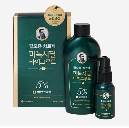 요즘, 탈모 치료 앰플 및 샴푸가 의약외품인 것에 비해, 미녹시딜 바이그루트액 5%는 일반 의약품으로 제약회사인 태극제약에서 만든 것이 특징입니다.