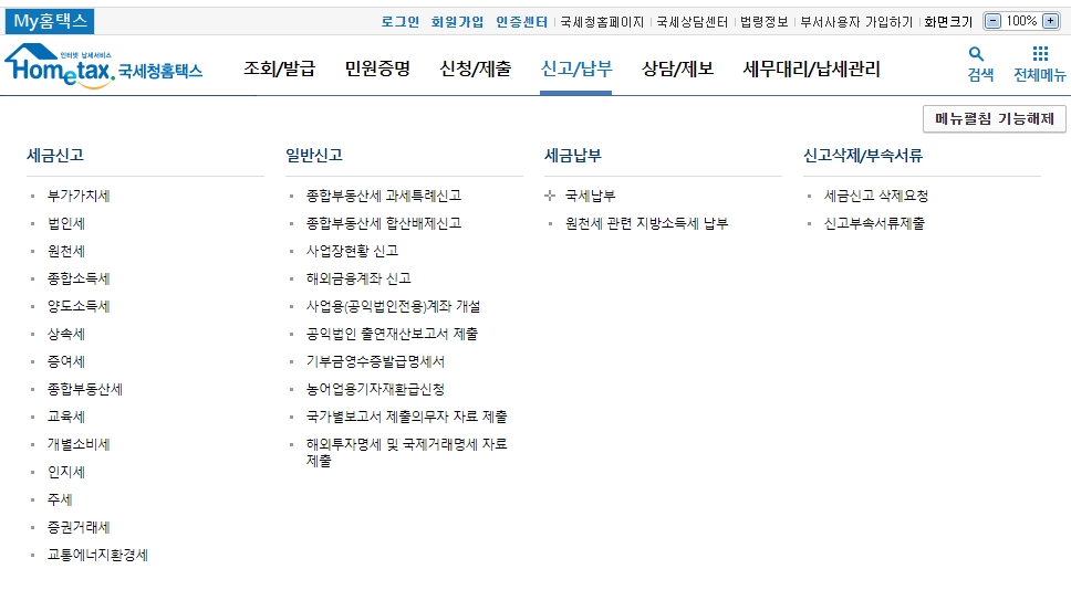1. 홈텍스에 공인인증서로 로그인합니다.