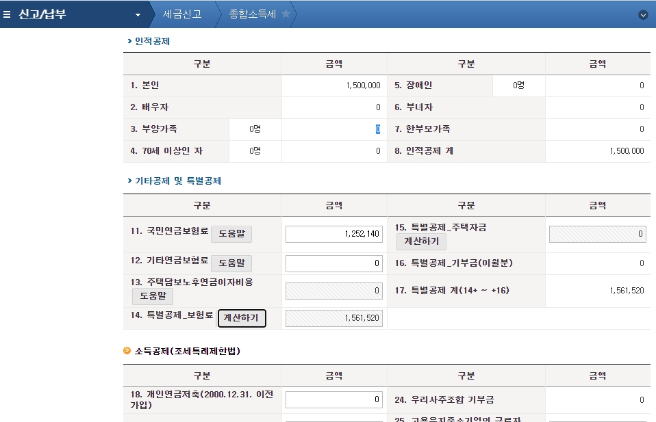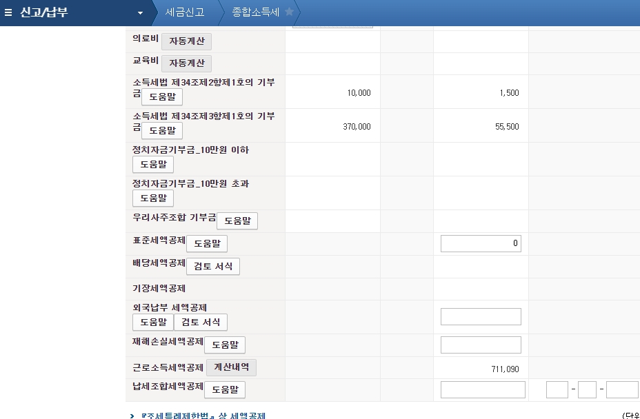 뭐, 마지막 페이지에 신고서 제출하기만 안 누르면 계속 작성하던 페이지를 불러와 수정할 수 있으니 계산에서 뭔가 빠진 것 같다고 생각 들면 며칠이 되었건 다시 생각해 보고 최대한 공제 누락이 없도록 하여 절세하시기 바랍니다.