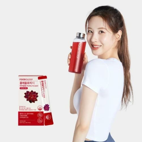스틱에 들어 있는 분말로 된 것을 물과 함께 병에 타서 마시는데, 빨간 물이죠. 아이돌 가수 서현 씨가 광고하고 있는데요.