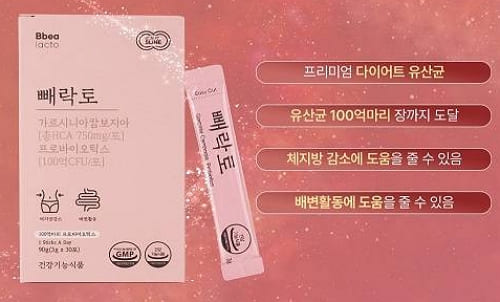 또한 빼락토는 BBealacto에는 비만예방 특허 5종과 인체시험으로 확인된 기능성 원료인 HCA성분, 가르시니아 캄보지아 추출물 성분까지 함유돼 있다고 하네요.