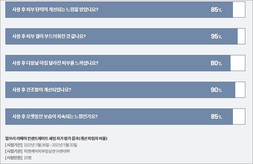 R3 리페어 컨센트레이트 세럼의 임상실험에서 나타난 효과를 보았는데요.