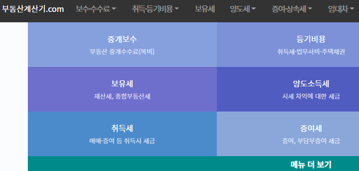다음에 '증여세'를 클릭하시면 다음과 같은 화면이 나옵니다.