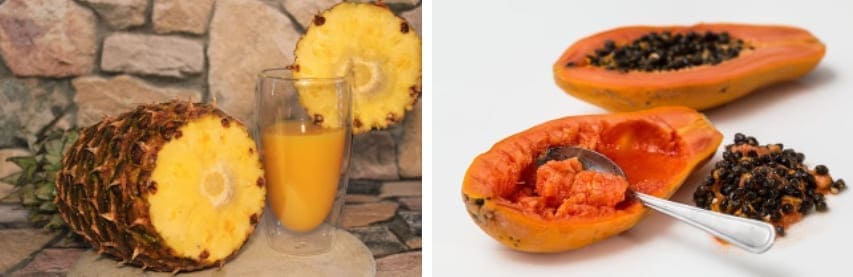 파인애플의 브로멜라인과 파파야의 파파인성분으로