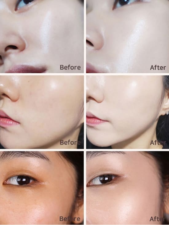 피부가 건강하고 예뻐 보임. - 퍼프에 많이 묻히지 않아도