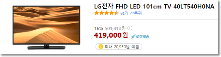 일단 21년 2월 신상이고 쿠팡 외에는 7~80만원대 형성 크기가 1미터가 넘지않는 선에서 고려 삼성 43인치와 고민중 화질이 별로란 의견이 많아서 LG 40인치로 선택