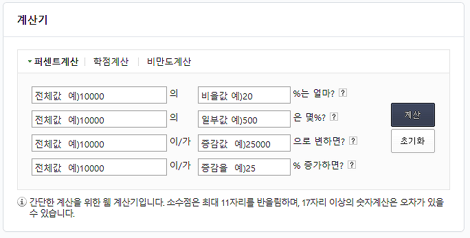오늘은 퍼센트 계산기에 대해 알아봤습니다.