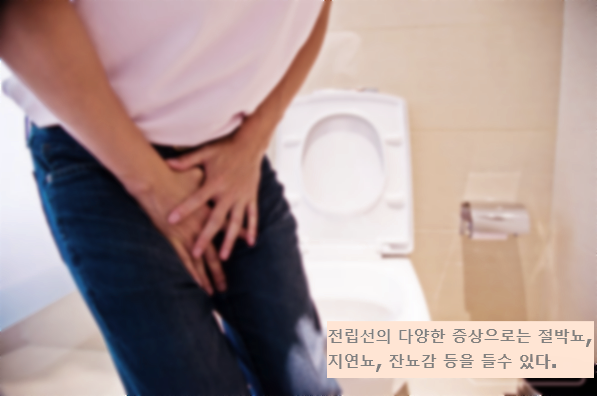 이 전립선은 40대 이후 노화가 진행되면서 점점 커지게 되면, 소변이 마려우면 참을 수 없는 절박뇨, 소변을 볼 때 뜸을 들여야 소변이 나오는 지연뇨, 갑작스럽게 화장실을 가야하는 절박뇨, 소변의 흐름이 끊기는 단절뇨와 배뇨 시 힘을 주어야 하는 등 방광의 배출 장애가 생기게 된다고 해요.