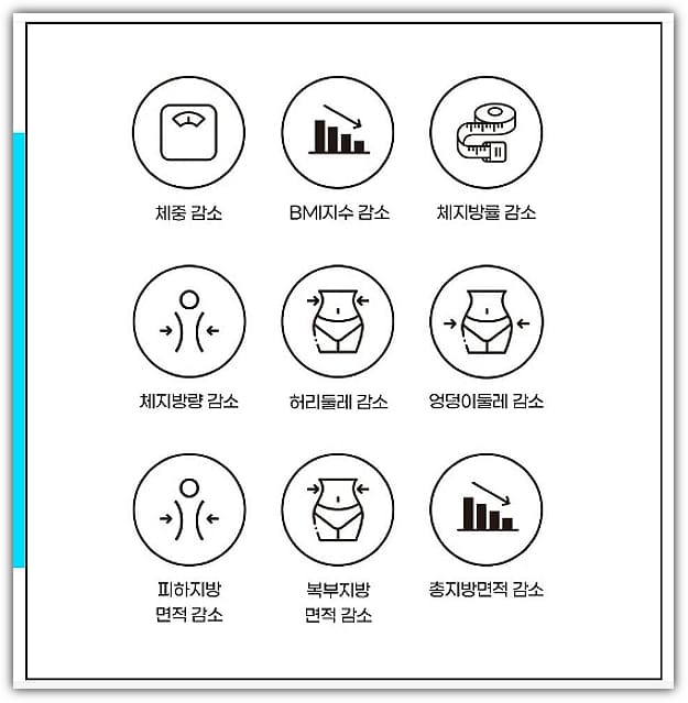맥스컷의 효과를 측정해 보기 위해 녹차추출물을 가지고 인체 적응 실험을 해 봤다고 하네요. 그 결과, 체중이 감소, BMI(Body Max Index; 체질량 지수라고도 하며 비만도 측정에 사용함) 지수 감소, 체지방률 감소, 허리둘레 감소, 엉덩이 둘레 감소, 피하지방 면적 감소, 복부지방 면적 감소로 인해 결국 총 지방 면적이 감소하는 효과를 얻었다고 해요.