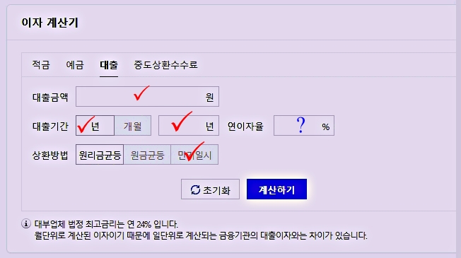 대출이자 계산기의 예