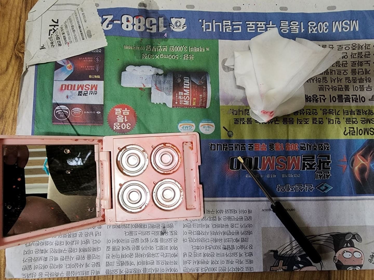 닦아낸다. - 찌꺼기는 물티슈로 깨끗이