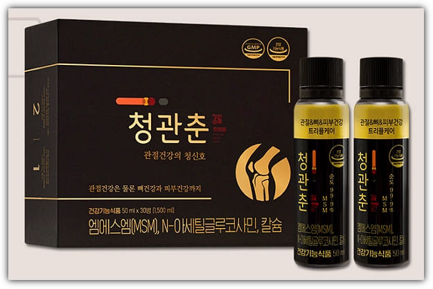 청관춘에는 관절통증 완화를 위해 MSM과 NAG라는 관절에 아주 중요한 성분을 함유하고 있는데요.