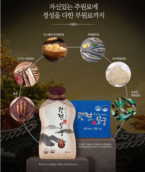 그리고 관절 보궁에 추가로 들어간 부가 재료들은 이 효능을 극대화하기 위해 추가한 영양성분으로 보시면 됩니다.
