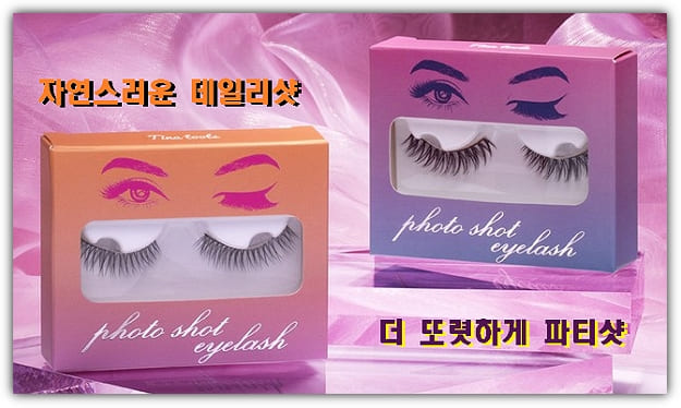 티나툴스는 쌍꺼풀 테이프와 속눈썹의 결합형 제품으로 붙이는 순간 아이메이크업을 완성할수 있는 신개념 매직 아이메이크업 아이템인데요. 데일리샷은 일상적으로 자연스럽게 사용할수 있는 디자인이며, 파티샷은 모임이나 결혼식 등 특별한 날에 사용면 더 돋보이는 연출을 할수 있도록 디자인돼 있다고 해요.