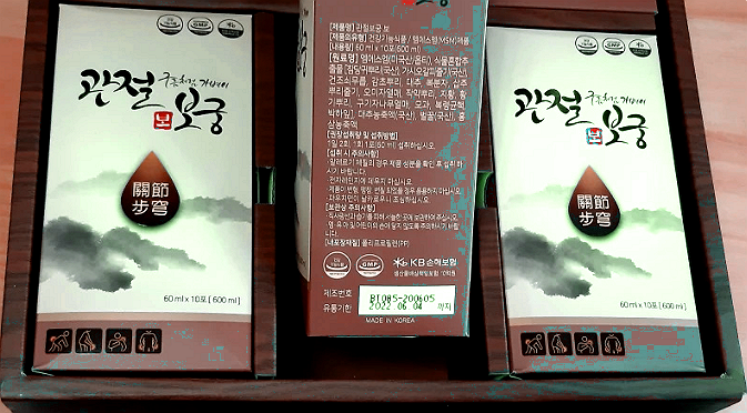 관절보는 또 마시는 형태의 액상으로 만들어져 있고요, 관절 궁은 타정으로 돼 있어요.