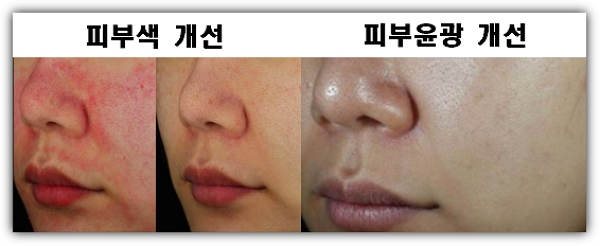 또 21명을 대상으로 한국피부임상센터 및 서울대분당병원에서 시험해 본 결과, 윤광이 개선되었고요. 피부거칠기(피부결)도 개선되었으며, 손상된 피부장벽 개선과 피부진정 효과가 있는 것으로 나타났다고 합니다.