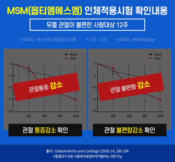 관절보궁도 그렇고, 호관원도 그렇지만, 관절영양제의 핵심 재료는 MSM이란 것을 알수 있어요.