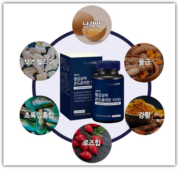 - 난각막, 보스웰리아, 초록입홍합, 로즈힙, 강황, 울금 함유