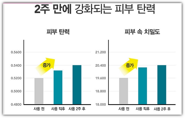 크림 사용후 2주만에 피부탄력과 피부 속 치밀도가 개선되었음을 확인
