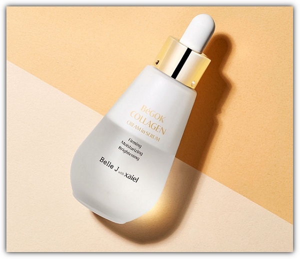 자이엘 콜라겐은 코스닥 상장기업 오상자이엘의 코스메틱 사업부 격인 (주)자이엘 코스메틱에서 만든 콜라겐인데요. 이 콜라겐은 일단 모양이 아주 재미있게 생겼어요. 예쁘장한 병에 들어 있는데 위에는 크림, 아래는 세럼으로 돼 있어서 사용할 땐 흔들어서 크림과 세럼이 섞이도록 한 후에 사용하는 겁니다.