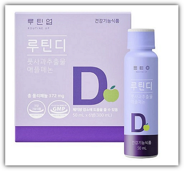 풋사과에 폴리페놀이 많다고 하죠. 일반사과에 비해 10배 이상이라고 하는데요. 풋사과를 250배 농축한 풋사과추출물인 애플페논이 루틴디에 들어 있다고 합니다.
