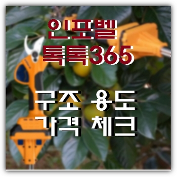 인포벨 톡톡365는 사실 보자마자 이게 뭐하는 용도일까 퍼뜩 생각이 날 정도로 단순한 기기인데요. 과수원이나 정원을 가꾸시는 일을 하시는 분들은 아주 친숙한 전동전지가위죠.