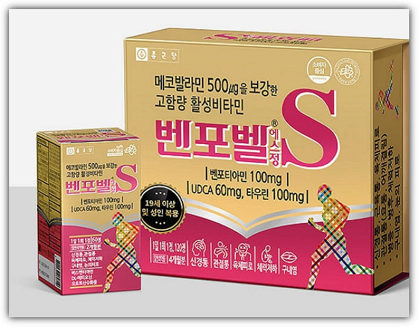 종근당 벤포벨 S는 종근당에서 만든 고함량 기능성 활성 비타민인데요. 성분에는 메코발라민, 벤포티아민, UDCA, 타우린 등이 주요성분인데, 한마디로 피로해소 효과가 가장 눈에 띠는 일반 의약품입니다. 제품은 60정이 한 병에 들어 있고 가격은 약국에 따라 다르겠지만, 대체로 6만원~8만원 정도 한다고 해요.