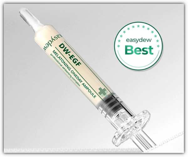 이지듀 기미앰플은 기미 및 잡티를 완화 또는 없애기 위해 대웅제약에서 이지듀(Easy Dew)라는 브랜드로 만든 앰플인데요. 요즘 핫한 원료로 피부재생에 도움을 줘 각종 피부질환을 개선하는데 효과적인 상처재생인자인 EGF(Epidermal Growth Factor)라는 원료를 사용했고요. 대웅제약이 개발한 EGF라고 해서 DW-EGF, 또 하루만에 기미를 개선할수 있다고 해서 'DW-EGF원데이 앰플'이라고도 불립니다.