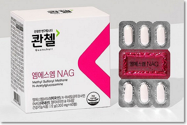 콴첼엠에스엠NAG는 MSM(메틸설포닐메탄)과 NAG(N아세틸글루코사민)를 주원료로 만든 5중기능성 관절건강기능식품으로 관절엔 콴첼엠에스엠NAG라고도 부름.