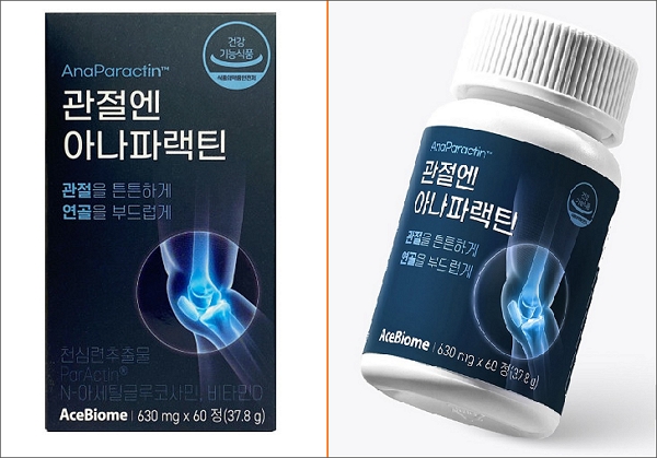 이 제품은 서흥헬스케어라는 회사에서 만들어 에이스바이옴에서 판매하는 제품인데요. 관절건강, 연골건강, 뼈건강에 도움이 된다고 합니다.