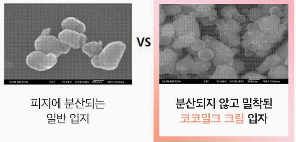 - 일명 리얼스킨핏 공법으로 피부에 분산되지 않고 밀착되는 코코밀크 크림으로 다크닝없는 예쁜 안색 완성