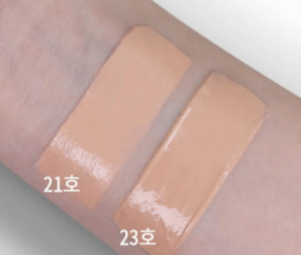 컬러는 2 종류가 있는데요. 밝은 피부톤에 어울리는 화사한 아이보리 컬러의 21호와 건강하고 자연스런 베이지의 23호 입니다. (아래 사진 참조)