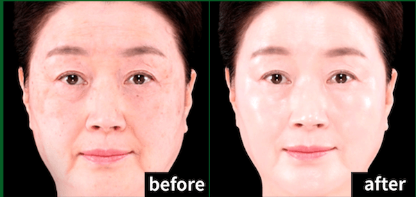 아래 사진은 끈적임없이 마르지 않는 촉촉한 리프팅 효과를 표현한 사진으로 바르기 전과 후의 모습 차이를 알수 있습니다.