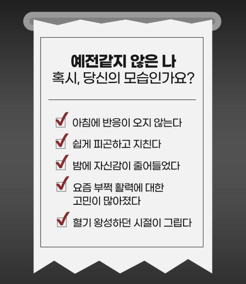 다양한 영양성분을 이것 저것 넣지 않는 대신, 남성 활력에 확실히 좋다고 알려진 성분들만 뽑아 함량을 높이지 않았나 싶기도 합니다.
