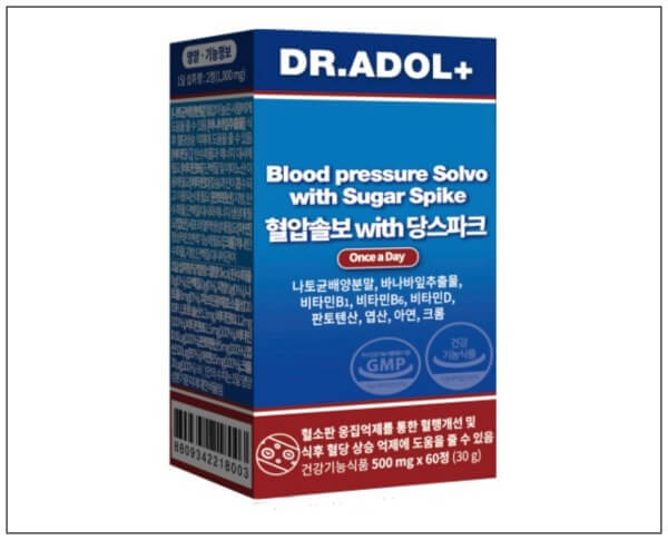 혈압솔보는 닥터 아돌이란 브랜드에서 만든 건강기능식품인데요. 높은 혈압과 혈행을 개선해주고 당뇨개선까지 해 줄수 있다는 매력이 있습니다.입니다. 이 제품은 혈액을 응고하는 피브린을 녹여주는 기능을 가진 나토균 배양물이 들어 있어 혈전을 녹여줘 혈행을 개선해주며 혈압이 높은 사람의 혈압을 낮춰주는데 도움을 줄수 있습니다. 뿐만 아니라 이 제품에는 바나바잎이 함유돼 있는데, 바나바잎은 식후 혈당상승을 억제하는 효과가 임상결과 증명돼 시중에서 당뇨개선 원료로 널리 사용되고 있습니다.