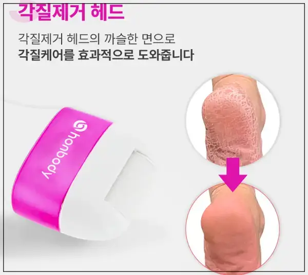 각질제거헤드는 까실까실한 재질의 롤러가 빠르게 돌아가면서 발바닥이나 발뒷굼치의 각질을 제거해 주는데요. 분당 6000회의 빠른 회전력이 있어 아기발처럼 깔끔하게 발관리하는데 유용하다고 합니다. 각질이 있는 발이나 발뒷굼치에 사용하실 것을 추천드립니다.
