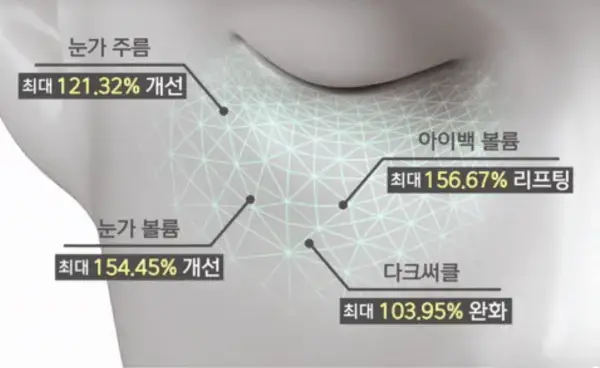 일시적인 효과만이 아니라, 4주 꾸준히 사용시 4주 사용후 최대 아이백 142.70%, 눈가 볼륨 127.05%가 개선된다고 합니다.