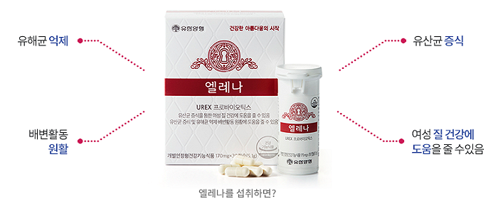 여성 질 건강제인 일레나에는 바로 이러한 기능성 원료인 유렉스 프로바이오틱스가 들어 있는데요.