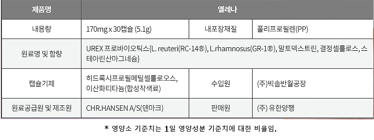 여성 질 건강제인 일레나에는 바로 이러한 기능성 원료인 유렉스 프로바이오틱스가 들어 있는데요.