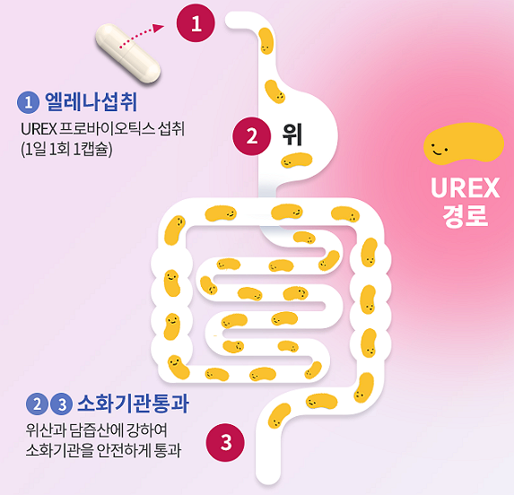 이 유익균을 보충해 주는 방법이 '유렉스 Urex 프로바이오틱스'를 먹음으로써 가능하다고 합니다.
