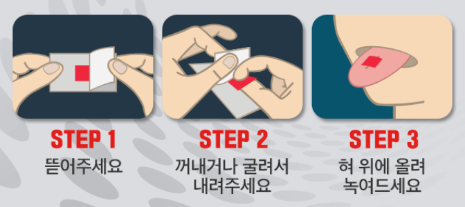 6. 구강 내에서 신속하게 흡수가 되므로 흡수가 빨라 같은 양의 알약에 비해 효과가 빠르다.