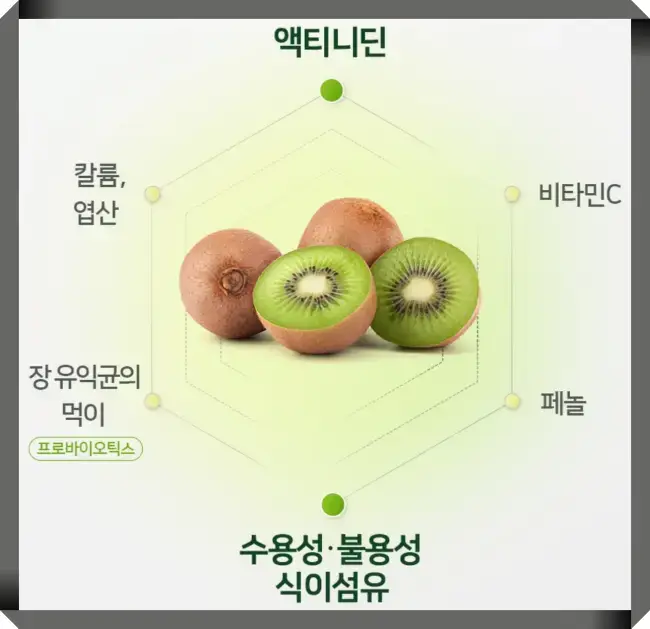 소화 및 항염 작용: 키위에서 추출된 다양한 효소와 폴리페놀은 소화 과정을 돕고, 항염 작용을 통해 염증을 줄이는 데 도움을 줍니다.